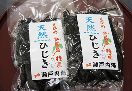One of Aijima Island’s special products is the handpicked natural Hijiki seaweed. By picking and sorting by hand, only high quality Hijiki of the same size with a rich flavor is selected. Hijiki can be served straight from the pot during best seasons, or purchased as dried and vacuum packed Hijiki all year round.