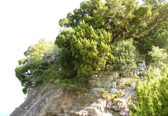 It is rare that a large amount of plant colonies form within Ehime prefecture. As a result, this site was designated as a natural monument of Ehime on November 24th 1927. The plant colony of juniper is worth seeing. Dozens of junipers live in a cluster on a rocky mountain called Shiro no Yama. The naturally gown junipers range in size from a root circumference of five meters, tree height of 21 meters and an estimate tree age of 300 years to small trees that only reach a meter.