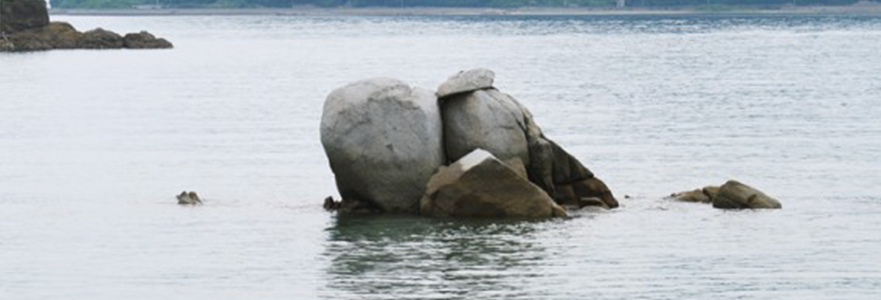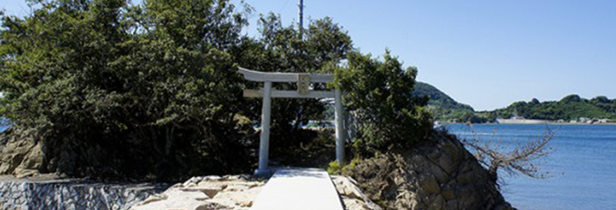 The Iwagami Shrine in Gogoshima Island is found in Umaiso district, which is located in the north of Yura port. An enshrined granite megalith, 5 meters tall with a 34 meter circumference, is said to carry the oldest daughter of Ooyamazumi God named “Iwanagahimenomikoto”. Iwanagahimenomikoto is worshiped as “Iwagamisama” by the local people.