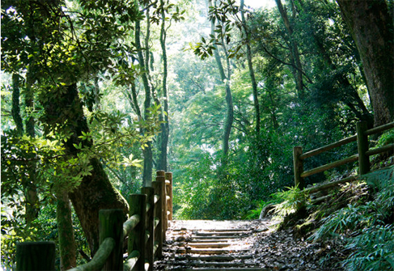 A beautiful woodland promenade at an altitude of 113.8 meters in Kashima Island, which is found on the west of Matsuyama City Hojo, is designated as the 59th spot of “88 walks in the forest of Ehime”. About 260 types of plants that favors warm climates grow on this island, especially plants of the laurel forest, such as Kuromatsu (Black Pine), Kusunoki (Camphor), Kakatsugayu and Nezumisashi (a type of Juniper). The trails of Kashima include the main trail, Yuna path, Kazehaya path, Kojika path, and Hazuma path. They are all suited for hiking and a walk through the forest. (Please be cautious of some parts of the path as they are dangerous)