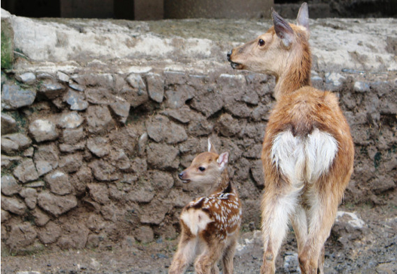 As the Japanese name states, there are many deer inhabiting Kashima Island. Kyushu deer inhabiting Kashima Island are designated as a natural treasure of Ehime prefecture. You can see wild deer all around Kashima Island. However, Kyushu deer inhabiting Kashima Island are generally small, timid and cautious, so they tend to stay back and watch people. There are stalls that sell deer food to feed them in Kasono deer park.