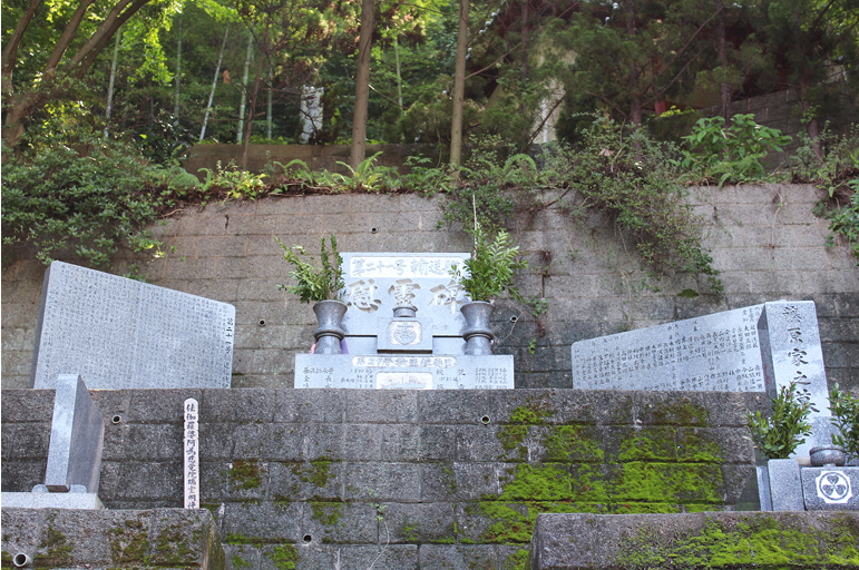 “Cenotaph of the 21st transport vessel” is located a little further in Dougenji Temple. On August 9th 1945, the 21st transport vessel heading from Kure to Otsushima was attacked by an American fighter aircraft and had to make an emergency landing in Tsuwaji. This 21st transport vessel weighed 1800 tons and carried 230 crew men. The ammunition carried on the vessel caught on fire and exploded. Injured officers and men were taken to a classroom in an elementary school to receive first aid treatment. Unfortunately, 63 young precious lives were lost. The cenotaph is placed in a site by the beautiful ocean of Tsuwaji. A little further away from the Cenotaph of the 21st transport vessel is a “Peace Monument” in Odarumi beach. The children of Tsuwaji are taught to keep this precious place clean and to pray for peace.