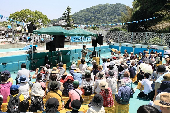 廃校となった泊小学校の屋外プールでアコースティックライブを開催。
