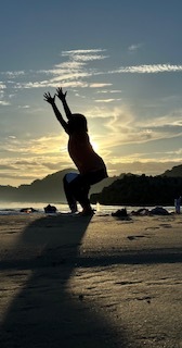 ビーチで波の音を聴きながら、ヨガのポーズや呼吸、瞑想を行い、心と身体を整える。シンキングボールを使ったセラピーも体験可能。