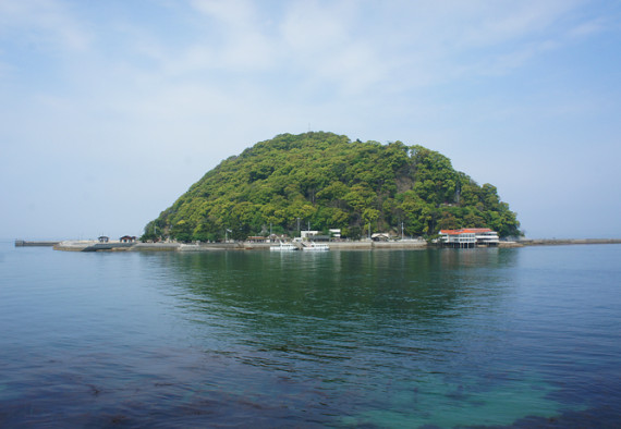 松山市北条の西方海上400mに浮かぶ、周囲1.5km、標高113.8mの鹿島。