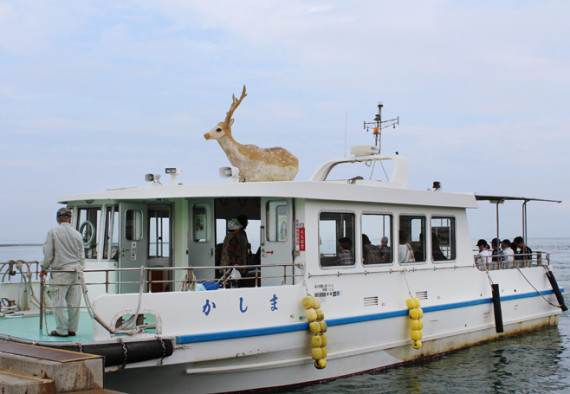 鹿島へは北条港から市営の渡船が20分(11〜3月は30分)置きに運航していて、往来がとても便利です。モニュメントの鹿がシンボルの渡船で約3分渡れ、松山出身のタレント「友近」のアナウンスが流れます。また鹿島を1周できる周遊船は、1部通行止めとなっている場所も見られ、2名から運航し約30分の鹿島遊覧が楽しめます。