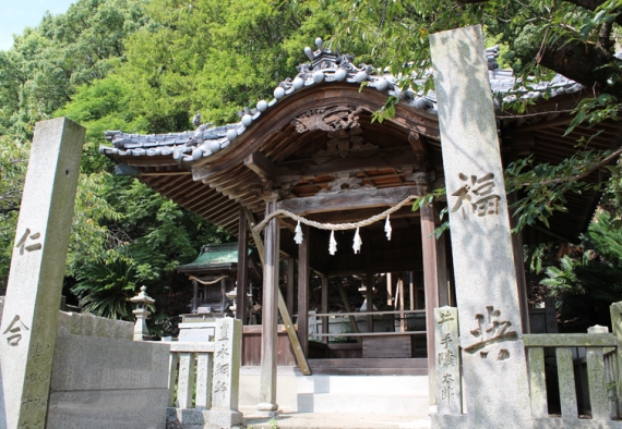 昔、高縄城主・河野通信が海上安全・五穀豊穣の守護神として玉理・寒戸島に龍神様を祀ったとの伝説があります。1955年頃現在地に遷宮しました。以前は、龍神様への雨乞いは盛んに行われ、鹿島山頂はその雨乞いの斎場であったといいます。この雨乞いは、全裸の若者たちが男根を藁でしばり、首にかけ、火のまわりを駆けまわると必ず雨を得るという奇習のため禁止されたと言われ、今では単なる伝説となっています。