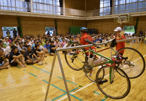 1日目にコースの下見や注意事項のお知らせがあり、その夜の前夜祭は島人あげてのあたたかいおもてなしで会場は盛り上がります。1年ぶりに再会した島人と参加者、また初めて島を訪れる参加者の方々もいつの間にか1つになり、明日の競技に向けて心を1つにします。