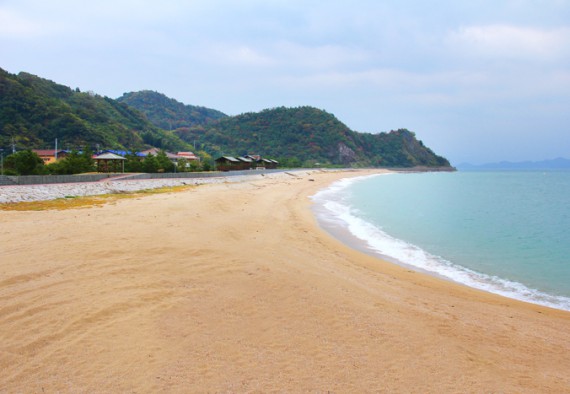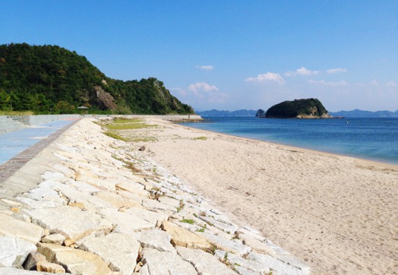 その中島の南側にある長師港近くの海水浴場「姫ヶ浜海水浴場」は、約500mの白い砂浜が広がり、透き通るきれいな青い海と多島美の雄大な風景が楽しめます。姫ケ浜海水浴場周辺には、トイレ・シャワー・更衣室など充実した設備が用意されており、宿泊施設もあります。