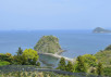 島の東西にある2つの山を”8の字”に回る「睦月のスカイライン」からの眺めは絶景であり、西には約9kmの島四国八十八ヶ所、東には約7kmの西国三十三ヶ寺があります。その島四国を締めくくる札所『玉善寺』には、樹齢300年以上と言われる周囲7mの楠木があり、幹が二つに分かれていることから『夫婦楠(めおとぐす)』と言われています。他にも多くの見どころがあり、歩いて渡ることができる「梅の子島」や三女神が祀られている「當田八幡神社」、書家・三輪田米山の「孳孳為善」の書がある注蓮石などがあります。