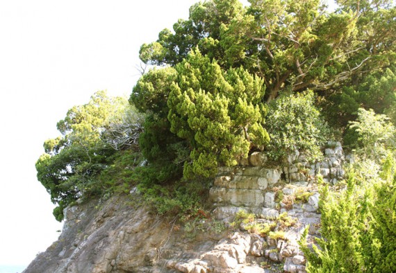 二神島にある「ビャクシン」は、愛媛県内でこれだけの群落を形成してるのは珍しく、昭和29年11月24日に県の天然記念物に指定されました。