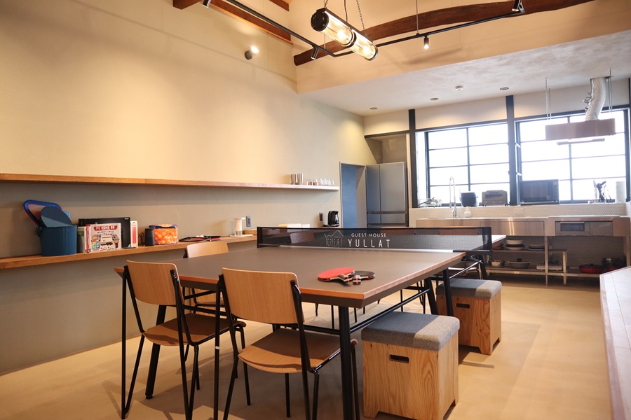 2023年春に新たにできたゲストハウス。港からすぐの民家をリノベーションしていて、オシャレな空間になっています。Yogiboがあるリラックスルームや、卓球台やゲーム機があり、家族やグループでの滞在が楽しめます。