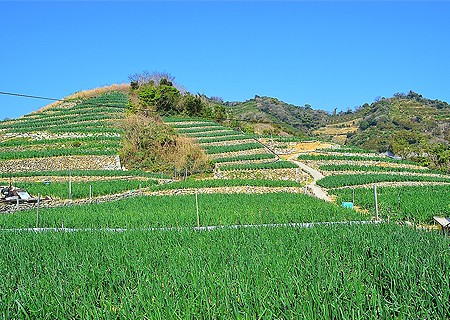 上怒和港を見下ろす 山の中腹を走る農道から見る風景