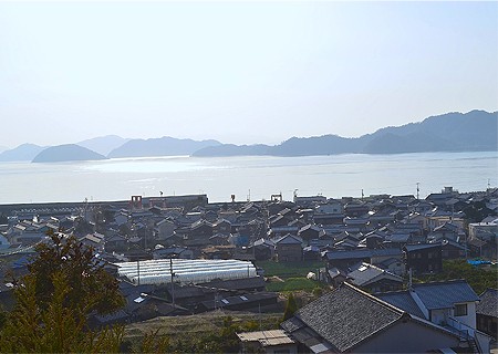 最初にみた丸子鼻を見下ろす農道に来ると、遠くに中島本島を見て遠くに双子島に二神島がみえます。この多島美が瀬戸内海ならではの美しい風景でここと同じものは2つとありませんから大事にしたいですね。