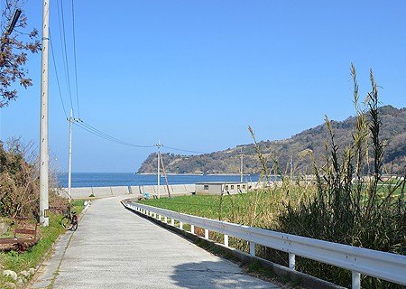 津和地を巡るプチ旅行では、唯一南側の半島を横断する形で少し登り坂になります。距離は短いのですが、両側に地面が見えるのでわかります。