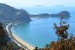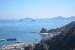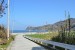 山の中腹に大きな道があるのがみえます。それが島の農道で、しっかり舗装されて道幅も広くゆったりサイクリングができます。