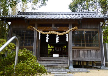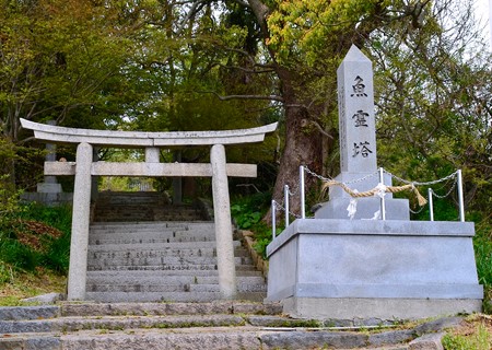 旧小学校のグランドだった天神社の境内には、すでに使われなくなった遊具が錆びついたまま朽ち果てようとしています。その側の茂みには小学校後の石碑が静かに佇んでいます。その神社近くの姫坂神社からのロケーションも小安居島が一望できる絶好のビューポイントです。