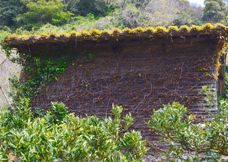 途中畑の中に蔦に覆われた小屋を発見しました。自然の力強さとそれにめげない島人のたくましさが見えるような気がしました。