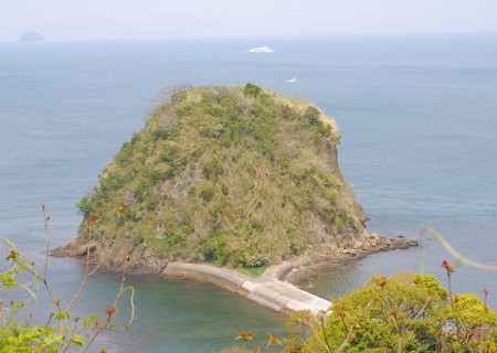 梅ノ子島に砦を造っていたのですが、こんな急斜面の何処に砦を造っていたのでしょうか。小さな陸路で可愛く繋がっている風景は面白くもあり、なぜかワクワクしますね。昔は干潮の時だけ歩いて渡ったそうです。