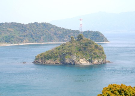 梅ノ子島砦跡は小さな道で繋がっている丸い島